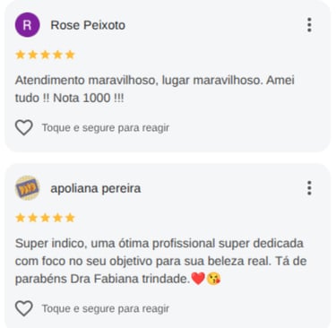Na Clínica Dra. Fabiana Lourenço – Estética Avançada, cada tratamento é cuidadosamente planejado para realçar a sua beleza natural, unindo acolhimento, tecnologia e segurança em cada detalhe.